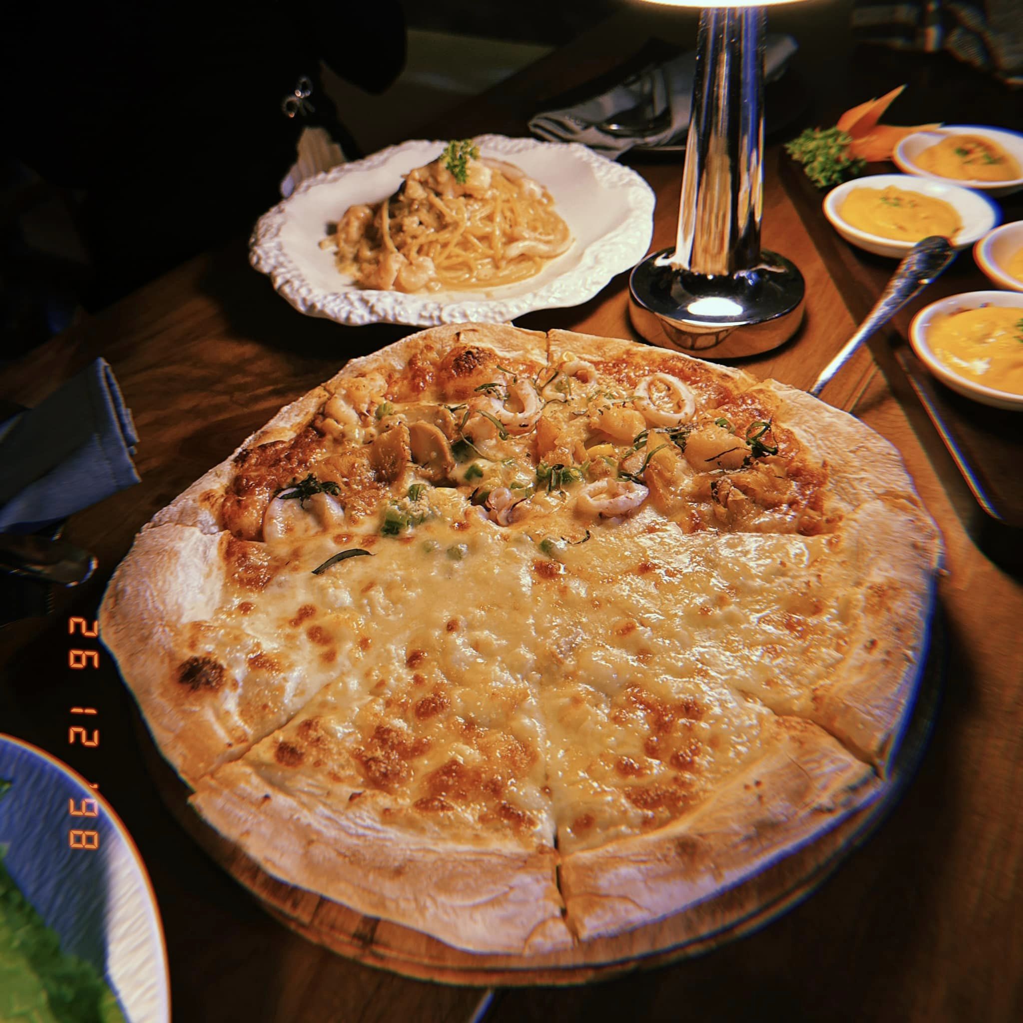 - Pizza DECA 14 (Nền sốt bí đỏ và thịt xông khói)