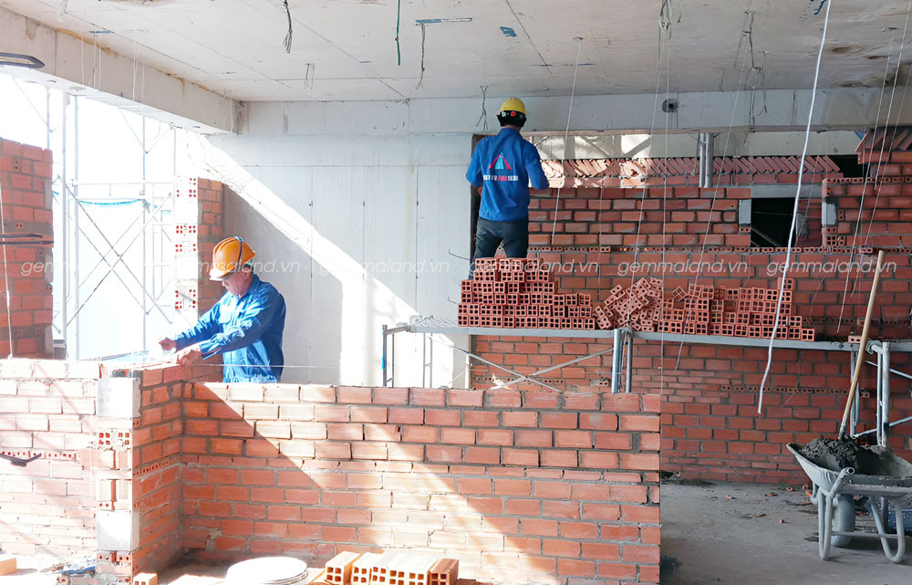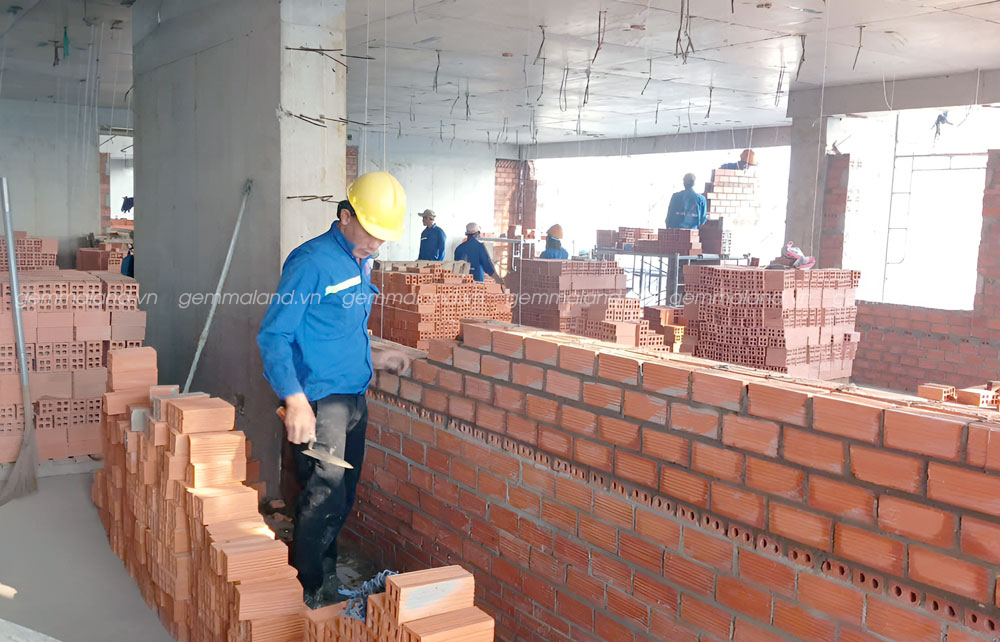 - Tháp Modern – Thi công xây tường tầng 7